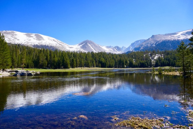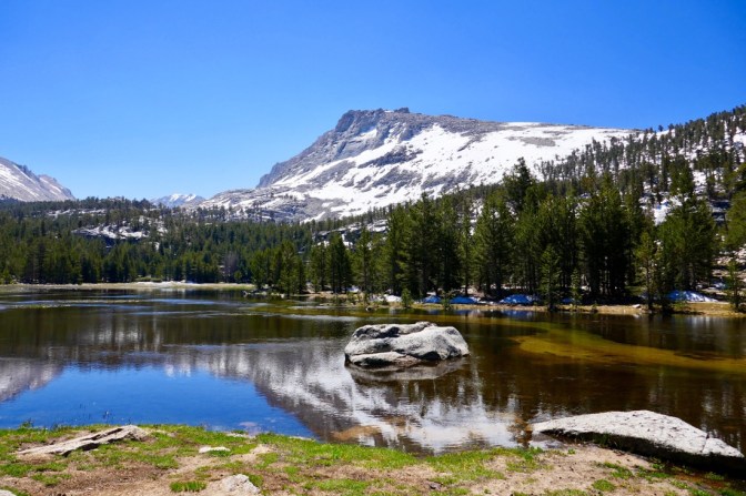 24.06.2017 – Heute geht es nach Bishop über den Kearsarge Pass. Der Pass gehört ebenfalls nicht zum PCT ist aber einer der wenigen Möglichkeiten nach Bishop, Independence oder Lone Pine zu kommen. Der sieben Meilen lange side Trail führt an mehreren Bergseen vorbei und ist eigentlich einfach zu gehen. Wenn da bloss nicht soviel Schnee wäre. Vor dem Aufstieg treffe ich dann aber erst noch mein erstes Reh auf dem PCT an.