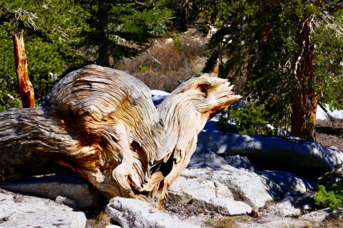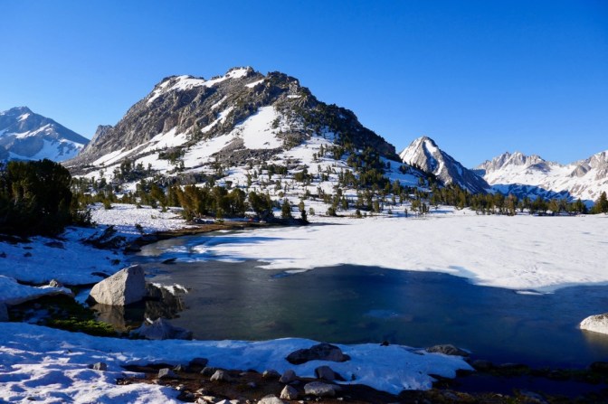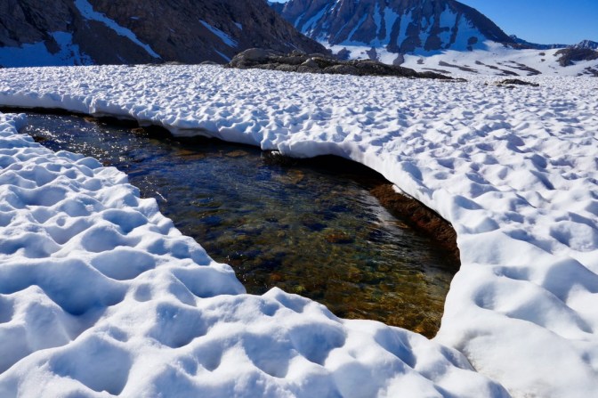 Es geht weiter in Richtung Mount Whitney. Mit 14'505 Fuss (4'421 Meter) ist er der höchste Berg in den USA. Bis auf die Bergspitze sind es 8 Meilen und etwas mehr als 1'300 Höhenmeter. Nach ein paar Meilen liegt einiges Schnee auf dem Trail. Durch die Sonne ist der Schnee schon ziemlich weich und das gehen fällt schwerer.