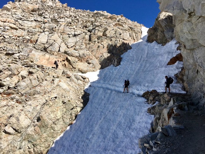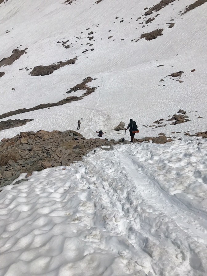 Das letzte Stück Schnee vor dem Pass ist dann doch sehr speziell und lässt uns alle mal kurz tief durchatmen.